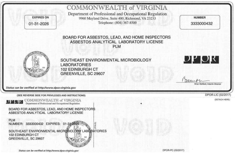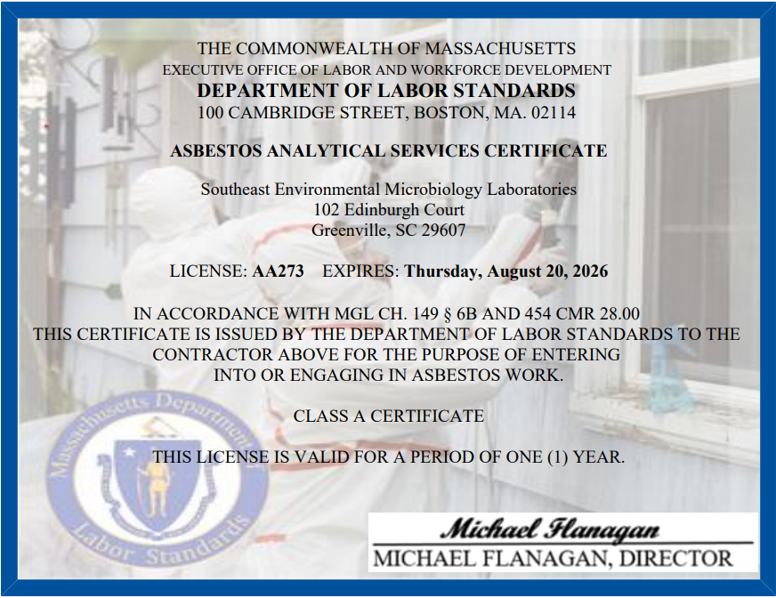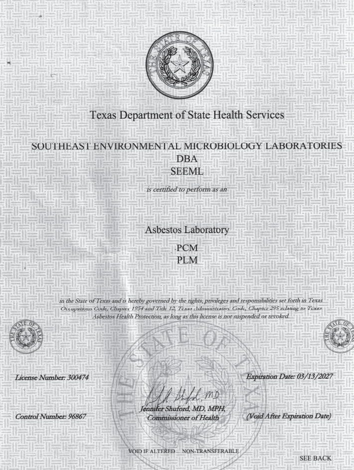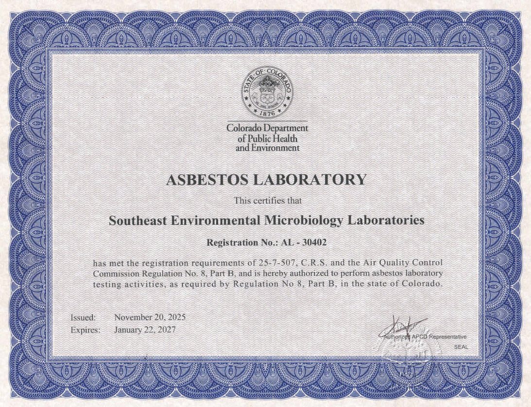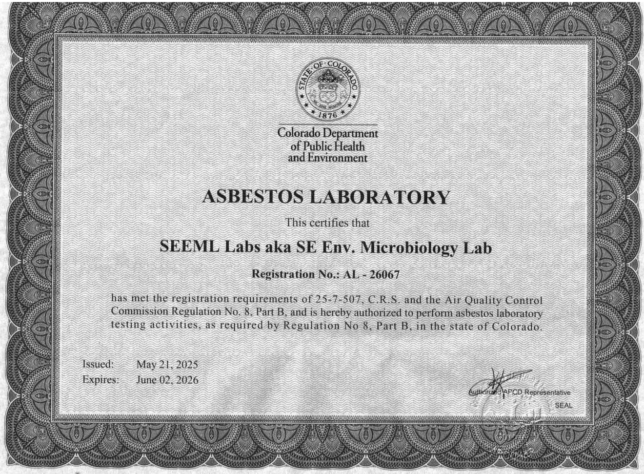 Founded in 2004, SEEML is an independent laboratory that offers top notch customer support and superior testing. Our focus is exclusively devoted to laboratory services for asbestos and fungal/mold analysis. SEEML was established to meet specific needs of industrial hygienists and othe professionals by providing responsive and cost effective environmental microbiology laboratory services tailored to the indoor air quality specialty. It is this level of superior service, expertise and technical support we furnish to our clients that sets SEEML apart from other microbiology laboratories. As it stands, our technical staff includes environmental microbiologists/mycologists that have over 20 years of combined laboratory analytical experience.