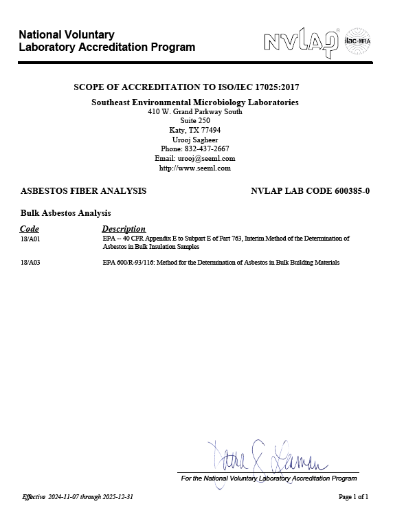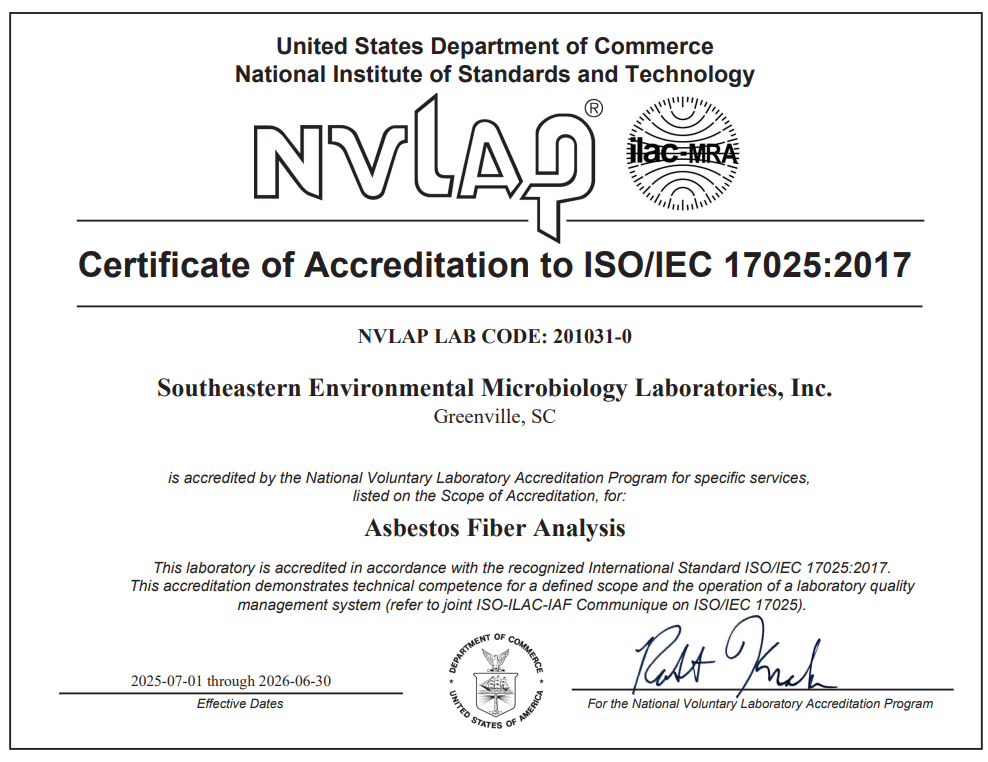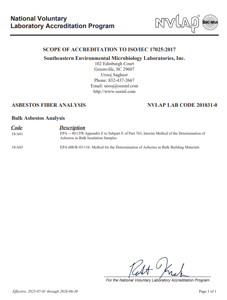SEEML takes pride in providing its clients with top notch customer service in addition to quick and efficient reports. Our focus on customer satisfaction means no project is too large or too small. Whether you are a national corporation, local consulting firm, or a home owner, you can count on the same level of quality and commitment to excellence. You’ll enjoy our dedication tin going that extra mile and taking time to provide our clients with personalized customer service not found with other laboratories. With a reputation for quality personal service, you won’t go wrong choosing SEEML as your laboratory of choice.