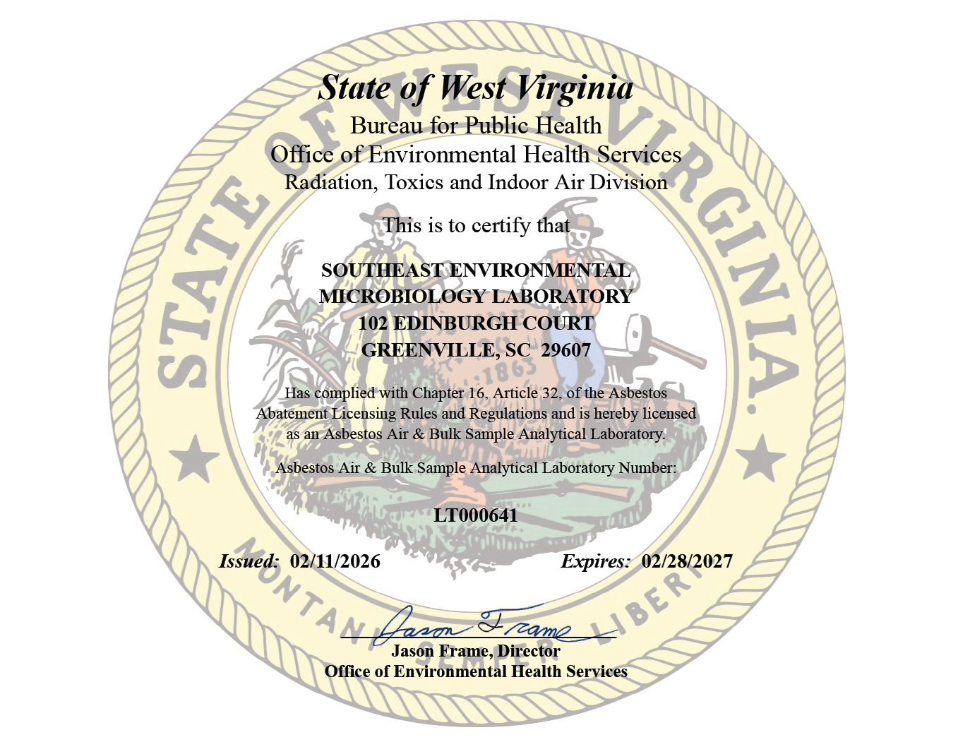 We are proud of the distinction of being an AIHA-LAP, LLC EMLAP accredited laboratory. In addition, AIHA-LAP, LLC advises us that our accreditation complies with International Standard ISO/IEC 17025:201, general requirements for the competence of testing and calibration laboratories. We are part of a small group recognized for achieving and maintaining a high level of professional performance. Even though our lab offers multiple types of fungal analyses, the accreditation for our Greenville, SC laboratory only covers the analysis of direct examination of air and surface/bulk samples for fungi.
